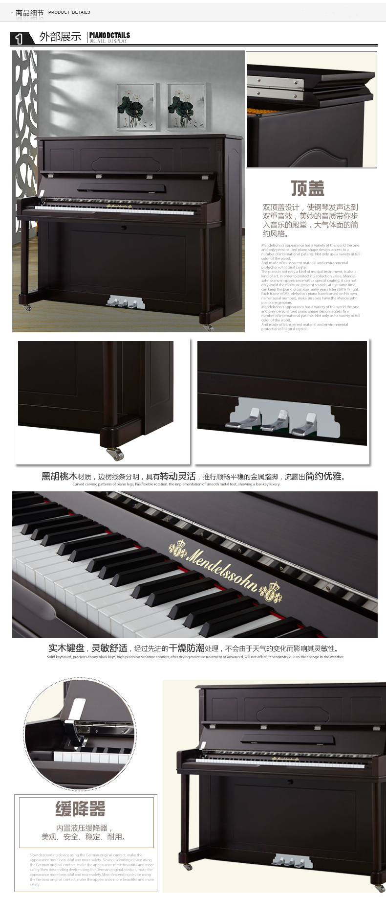 - 采用德國mendelssohn專制擊弦槌,音質更加柔美。