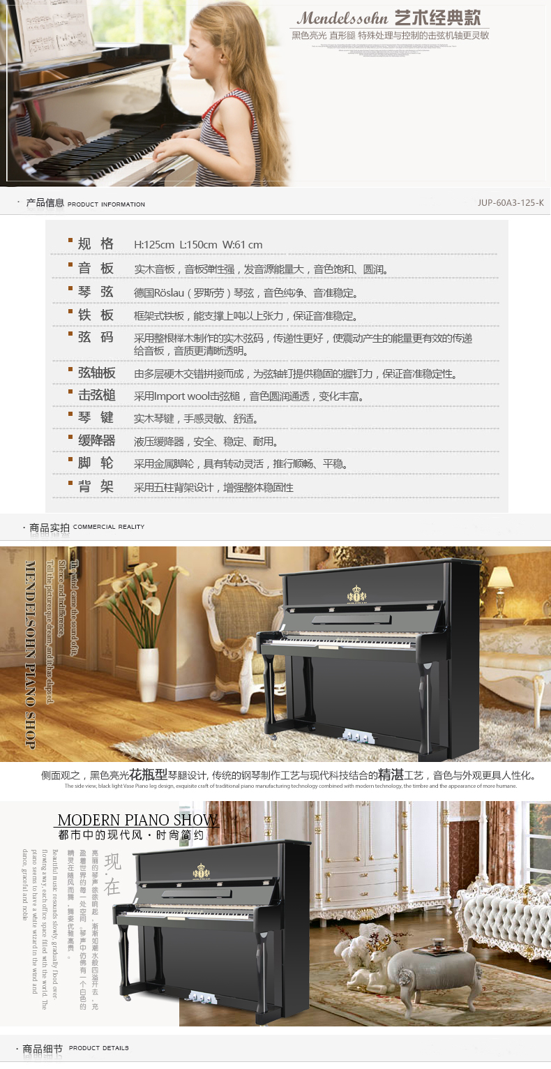 黑色亮光琴身,花瓶型琴腿設計,具有典雅的自然情懷。