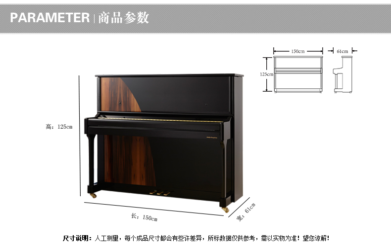踏板系統:實木踏板系統,采用木質堅硬的櫸木制作,聯動性和穩定性強,經久耐用,腳感舒適,不易產生雜音,為您提供更加純凈的音樂感受。