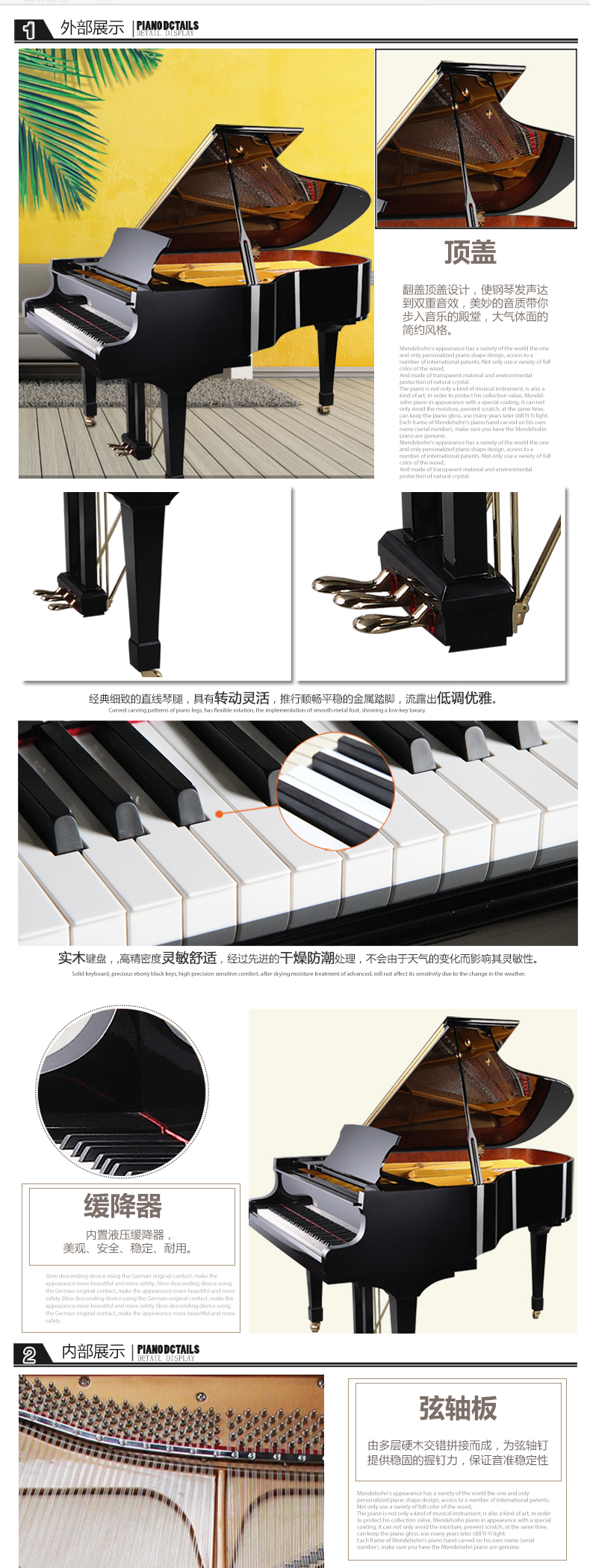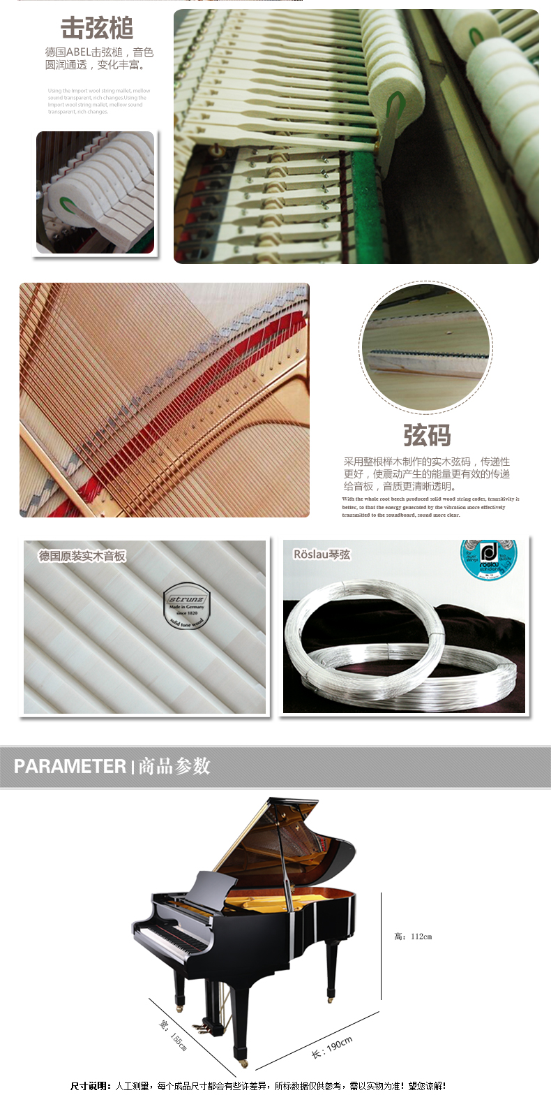9.弦軸板:采用進口弦軸板,密度大,受力均勻,穩定性更強
