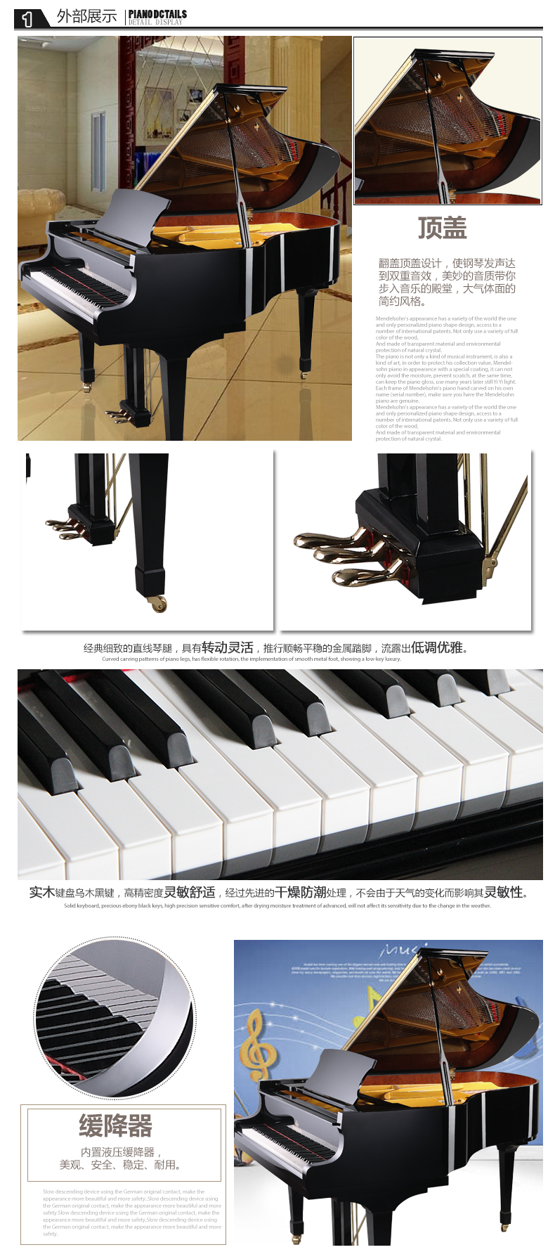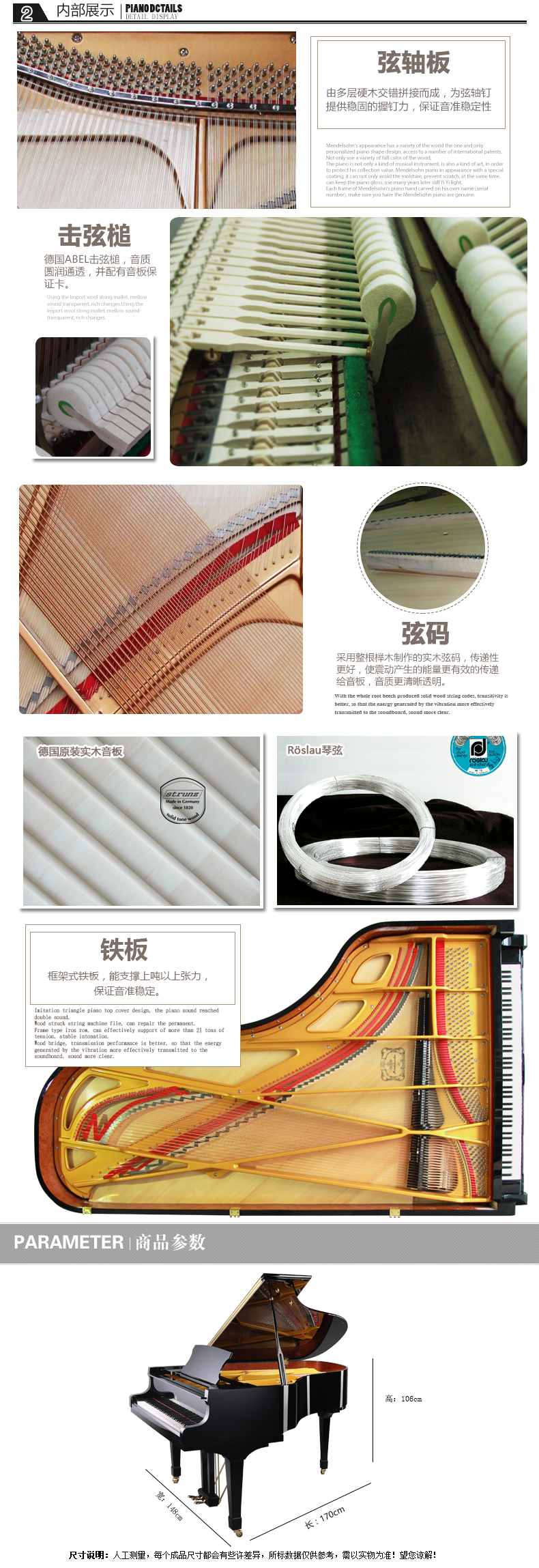 6.鍵盤:歐洲白松實(shí)木鍵盤,名貴烏木黑鍵,不易開裂變形,具有很好的觸感